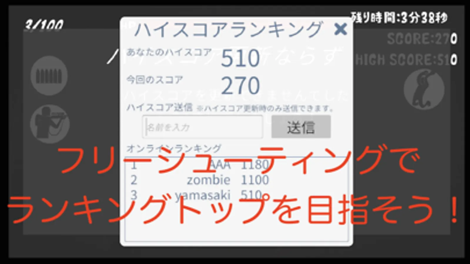 ・Score ranking (free shooting mode only)