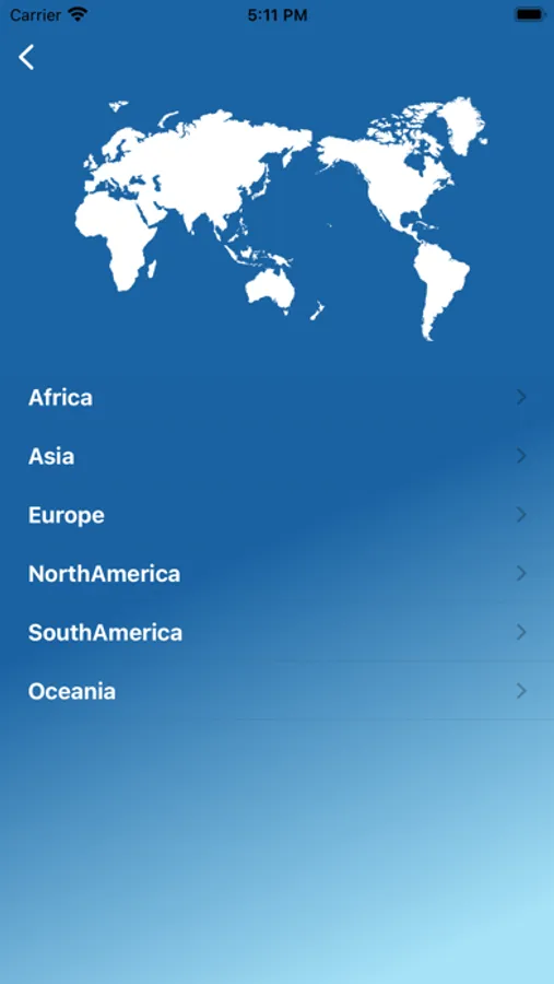 The learning module includes several continents in the world, and you can learn the national flags of all countries in each continent.