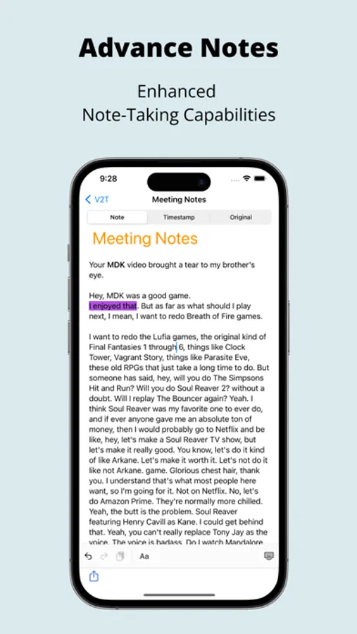 V2T is more than just a transcription app. Our robust note-taking features allow you to organize and annotate your transcriptions effectively.