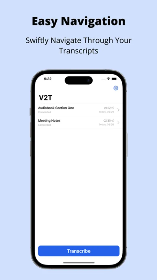 V2T is the go-to transcription app that effortlessly converts audio into text. Whether you're a student, journalist, researcher, or professional, V2T enhances your productivity by simplifying the transcription process.