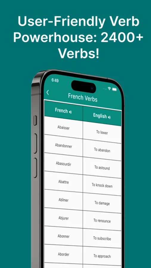 Are you looking to elevate your French language skills? Look no further! Our French Verbs app is your trusted companion on the journey to linguistic excellence. With over 2400+ verbs, audio pronunciation for each one, and a user-friendly design, learning and mastering French verbs has never been more accessible and enjoyable.