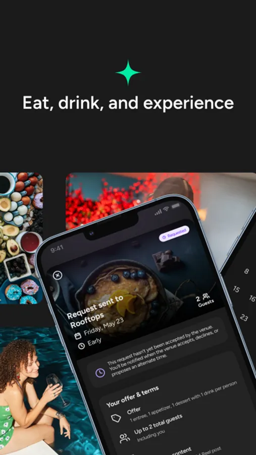- Read the venue's offer and promo terms, then send a booking request. The venue will either accept you or propose a different time based on their availability.