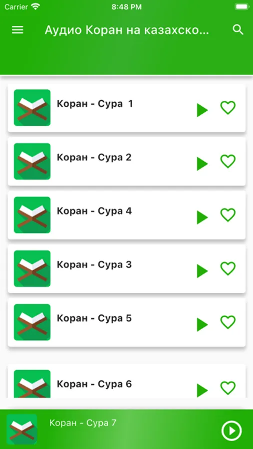 тіліндегі Құран аудио қазақша - бұл тегін қосымша. Құран дыбысын тегін тыңдаңыз, қолданбаны пайдалану оңай, тілінде Құран аудиосы бар 114 сүрені тыңдаңыз.