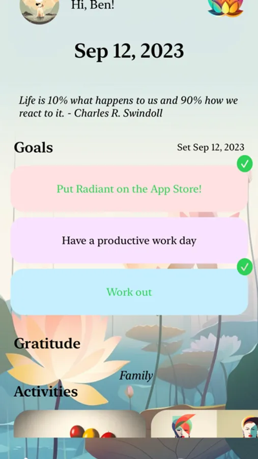 Start your day off right with a daily reflection. This guided check-in helps you focus on your thoughts, feelings, and goals.