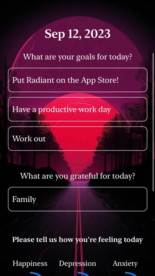 Radiant is a mental health app that helps you take care of your mind and soul. With a daily reflection, a community forum, and a therapist chat bot, Radiant is the perfect way to stay connected, supported, and on track.