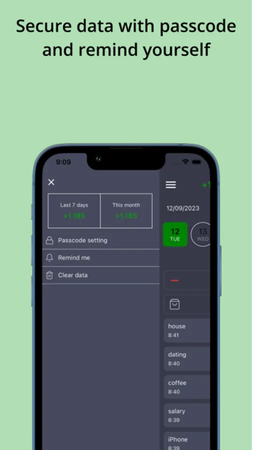 - Secure your data with a passcode