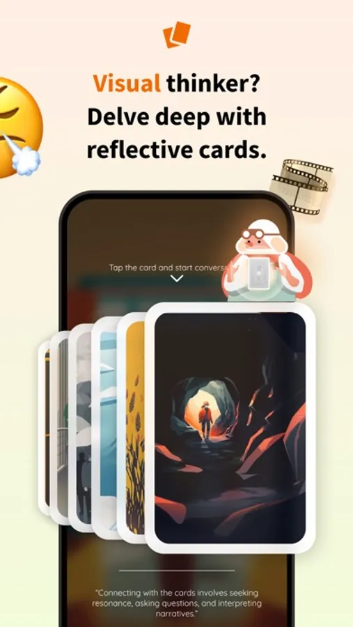 • Utilize 150+ vibrant visual cards to delve into your subconscious mind, revealing hidden potential and insights.