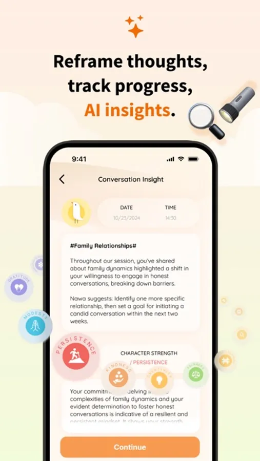 2. Nawa will remember every conversations with you, actively ask about your progress and well-being afterward, checking for the latest updates and providing specific guidance. Help you to forge healthy habits and gain valuable insights into your emotional journey.