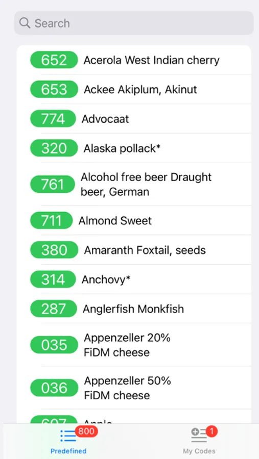 You can also add your own custom food items in the app starting from code 800-999