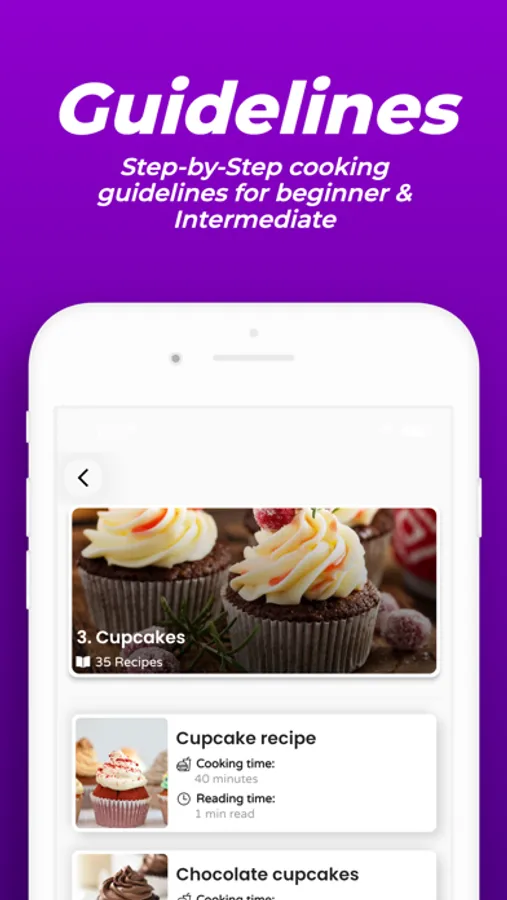 There is also a categories of cupcakes in our app. Our app contains a lot features that can help you in cooking. there is also a dark theme in our Cake Recipe app.