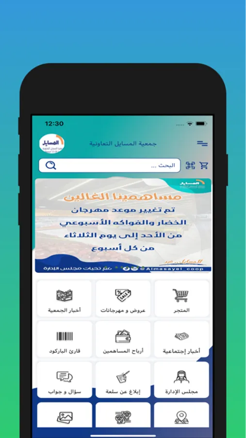 الاصدار الرسمي لجمعية المسايل الذي من خلاله تسعي إدارة الجمعية على تقديم افضل خدماتها للمساهمين ورواد الجمعية عبر هذا البرنامج، والذي يشمل: