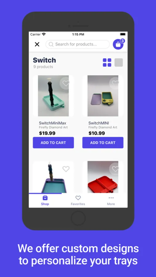 We are a 3d printing company that specializes in designing and printing diamond art trays for the diamond art community. We offer custom designs to personalize your trays. Check out our website FireflyDA.com