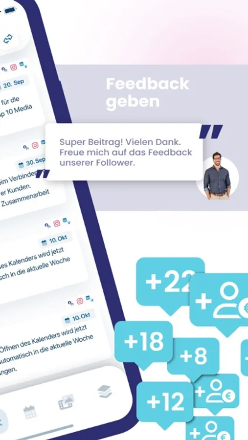 Via Push-Nachricht und E-Mail auf erforderliche Freigaben von Beiträgen aufmerksam machen und direkt Feedback einholen.