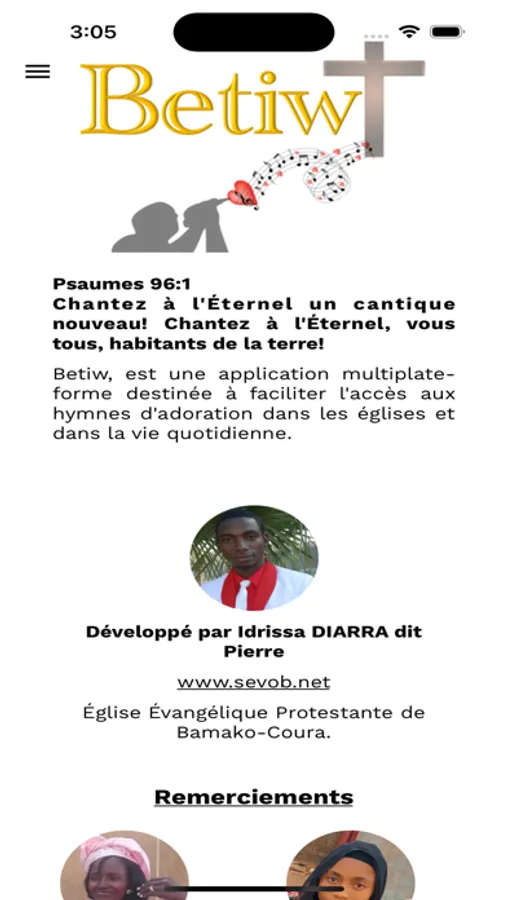 Betiw est une application multiplate-forme destinée à faciliter l'accès aux hymnes d'adoration dans les églises et dans la vie quotidienne.