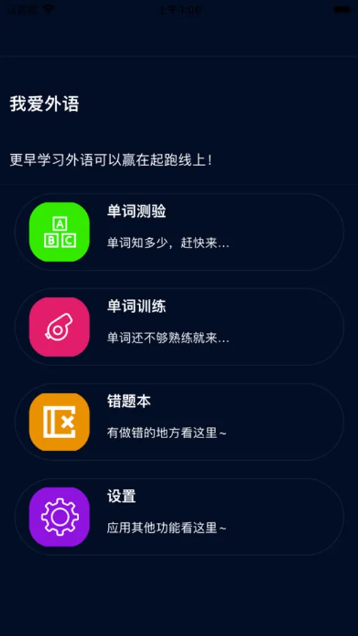 I Love Foreign Language This application is a tool specifically designed for those who love English to learn English words. It provides functions such as word tests, word training, and error books, which can help you master English faster!