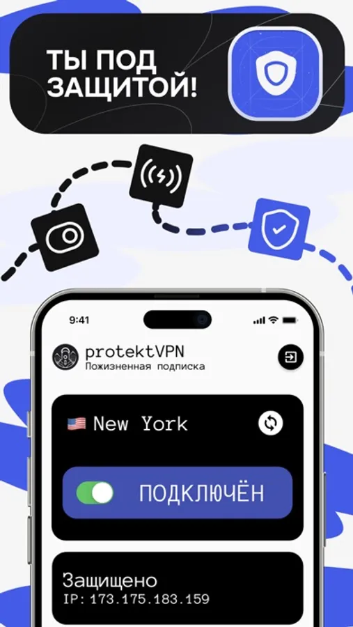 protektVPN - это простой в использовании сервис для iPhone и iPad. Наш главный приоритет - безопасность пользователя. Мы используем передовые технологии, чтобы надежно шифровать трафик пользователя и обеспечивать стабильное и постоянное соединение.