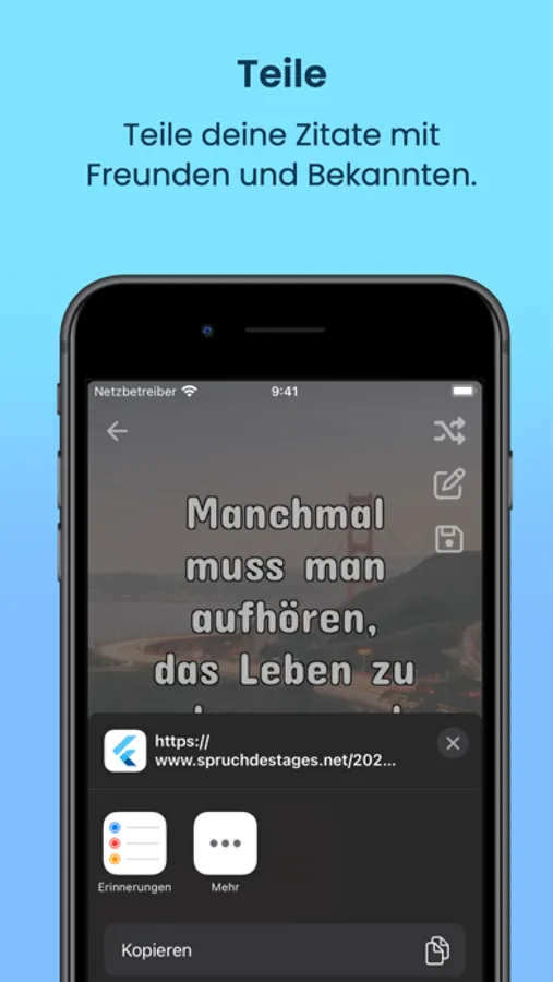 Teilen: Sende deine Zitate direkt über die A-Z Zitat des Tages App an Freunde und Bekannte.