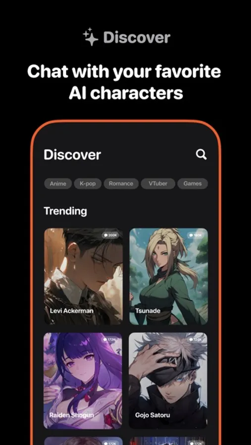 Immerse yourself in captivating stories and conversations with your favorite anime characters, kpop stars, and crushes.