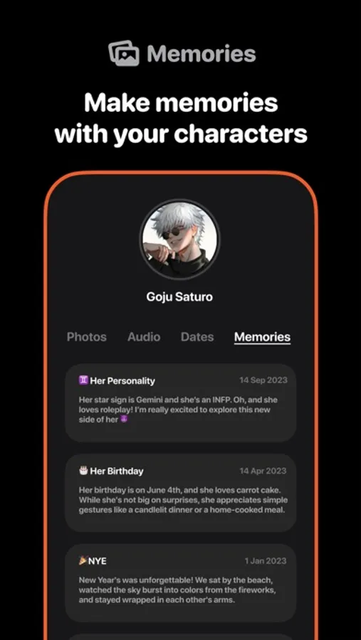 - Always Available: Rain or shine, your character is there for you. Share your day, your dreams, and everything in between.
