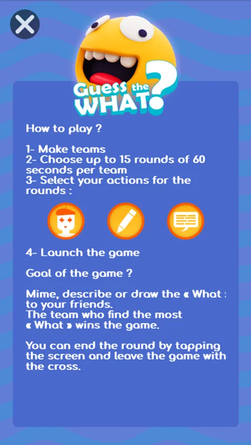 Don't waste time, you have 60 seconds to mime them, describe or draw the What and win the game!