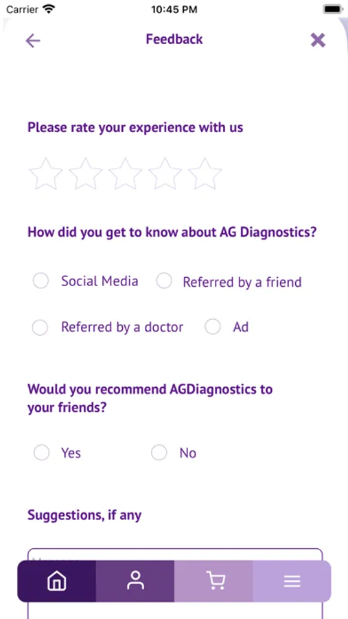 An App that allows the patient to request Lab test , various health check up profiles and Sample Collection (Blood, Urine etc) at home. When the patient places the order a sample collector (phlebotomist) will be dispatched to the patient location for Sample Collection. Time of Visit of the Sample Collector can be scheduled by the patient. After processing the samples at the lab the result report will be made available on the App.