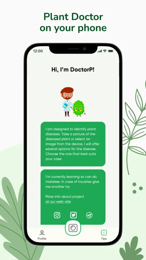 Please ensure that your device is connected to the internet to receive a diagnosis! To examine your plant, simply take a photo of it or choose a photo from your device. A sophisticated neural network, trained on a real-world dataset, will provide predictions along with descriptions, examples, and treatment advice.