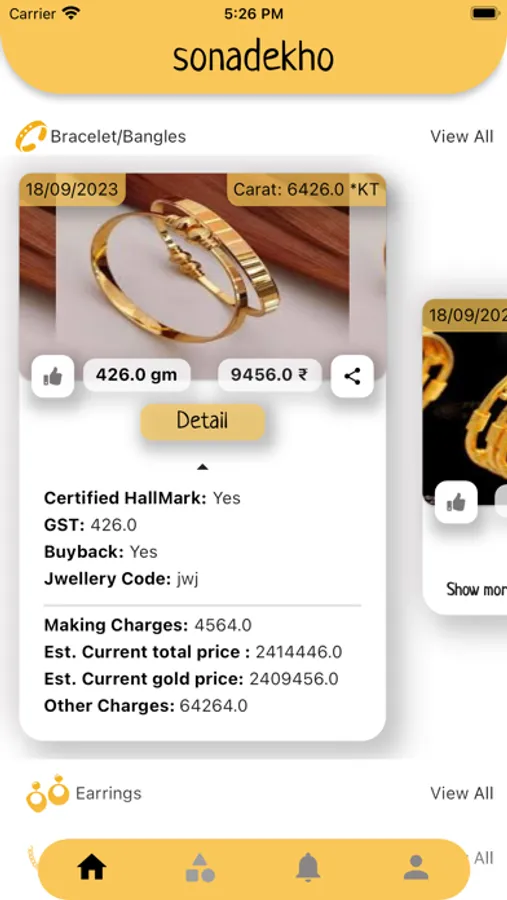 Sonadekho is a new way of offline jewelry shopping by seeing jewelry posted by verified jewelers in your city with all the details. Browse from a vast catalog of designs and details of jewelry from verified shops in your city, Whichever designs suit you, visit the store to purchase it offline.