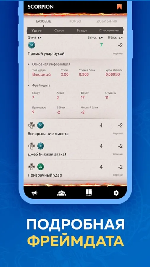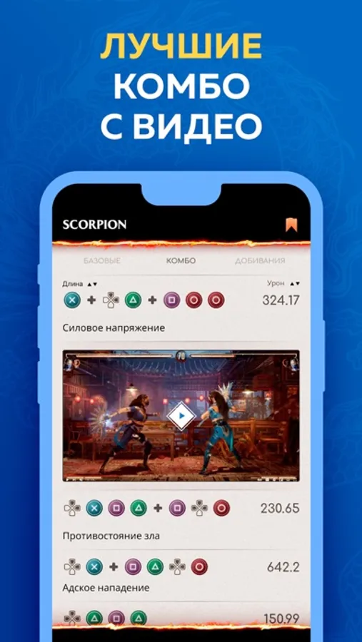 Джонни и Качалка Мортал Комбат 1 представляют самое полезное приложение для игроков MK1. Все удары и фаталити всегда под рукой. Смотри самые быстрые и безопасные удары за Скорпиона, Саб-Зиро или любого другого бойца.