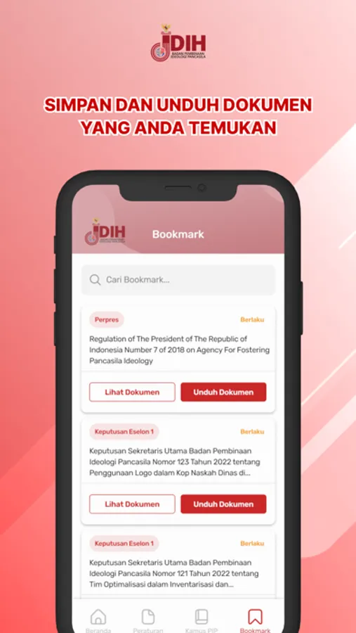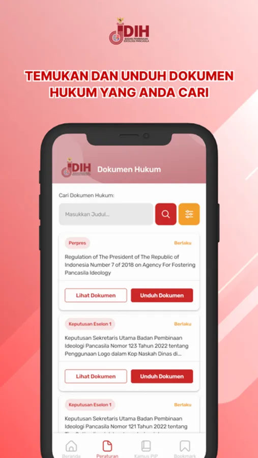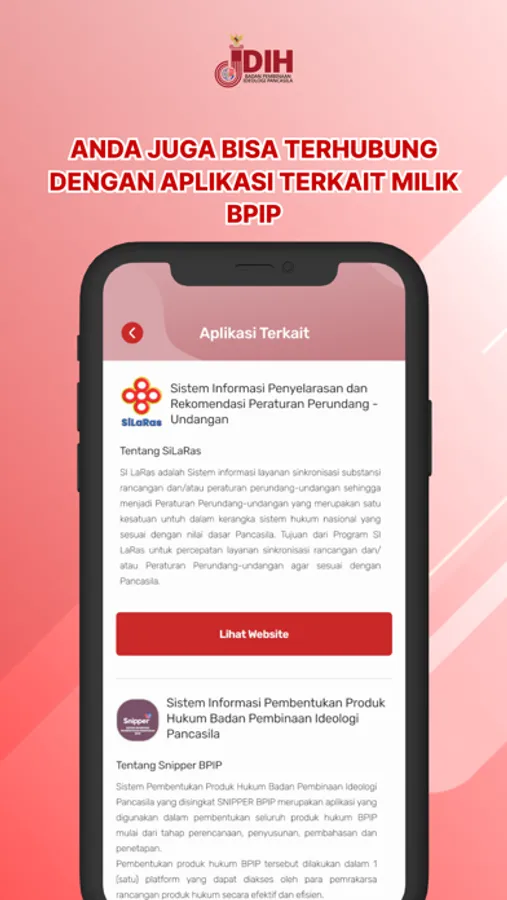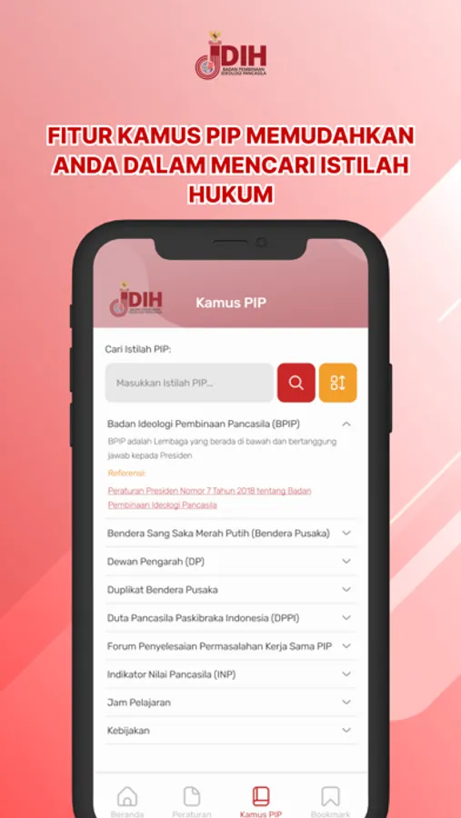 JDIH BPIP adalah wadah pendayagunaan bersama atas dokumen hukum secara tertib, terpadu, dan berkesinambungan, serta merupakan sarana pemberian pelayanan informasi hukum secara lengkap, akurat, mudah dan cepat.
