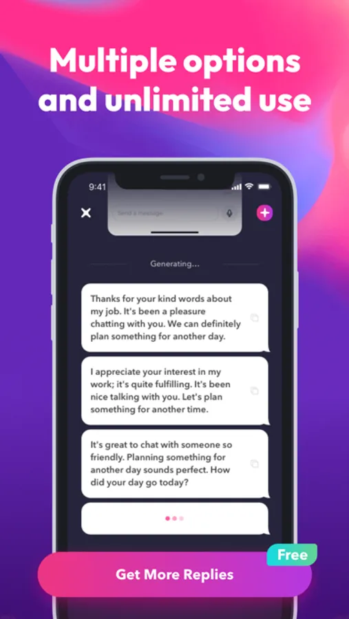 Rz.ai goes beyond dating – whether you’re navigating a romantic connection, networking, or professional chats, our algorithm generates authentic and engaging responses for any situation. It’s more than just a dating wingman – it’s your go-to communication ace. Rz.ai works seamlessly with all major dating and social apps, including Tinder, Grindr, Hinge, Bumble, POF, Badoo, Wizz, WooPlus, Snapchat, Facebook, and Instagram etc...