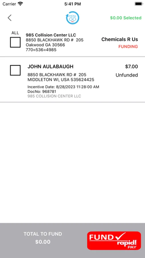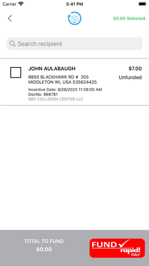 RapidFund lets you review each of your recipients' card funding to make sure that payees and amounts are correct. Select the recipient to be funded and move the funds to the recipient's card immediatly.
