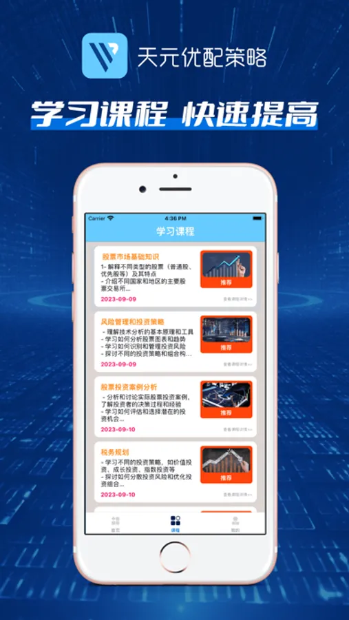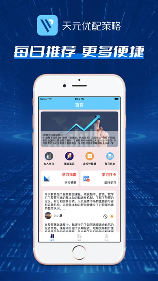 3、学习分享与社交分享:用户可以将自己的学习心得、笔记或课程链接分享到其他社交平台,让更多的人参与到股票学习中来。同时,也能在我们的APP内看到其他用户的学习分享,互相激励、共同进步。