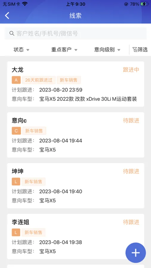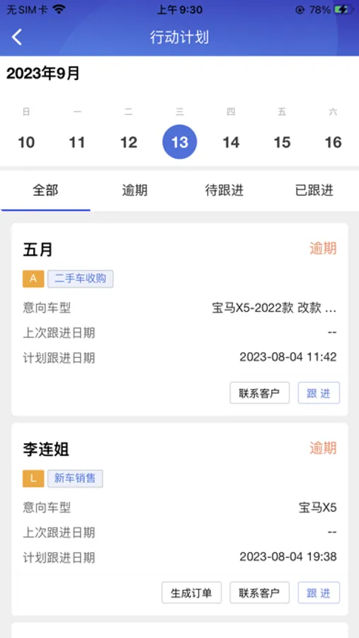 7、售前4S店业务(行动计划,商机,意向客户,试乘试驾,来店登记等功能);