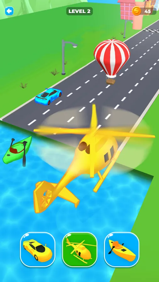 Shape Changer is an action-packed shift shape race that tests your quick decision-making skills. And if you love shape transform, shape evolution is the perfect game for you! Get ready to enjoy hours of shifting games. In the Shape Shifting Games, you will change the shape of your character to become different vehicles. Swiftly switch to a car, helicopter, or boat as they move through different tracks and environments. If you're too slow, you start again. Just tap your mobile screen to play Shape Evolution. Shift between different vehicles on tracks through land, air, and sea. Quickly adapt in this shape transforming game to conquer challenges and win against others. Can you master the change shape game?