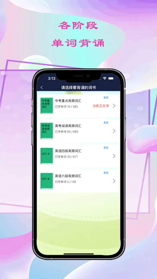本app在于帮助英语学习者提高英语学习效率,其中有每日一句英语、唯美英语、励志英语、日常用语、小学单词分类及国际音标等,最主要是可以背单词,目前已有中考重点高频词汇、高考阅读高频词汇、大学英语四级高频词汇、大学英语六级高频词汇,后面陆续会有更多功能,让我们一起努力吧。