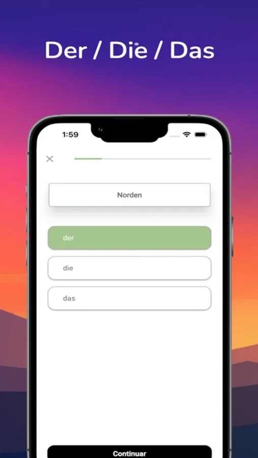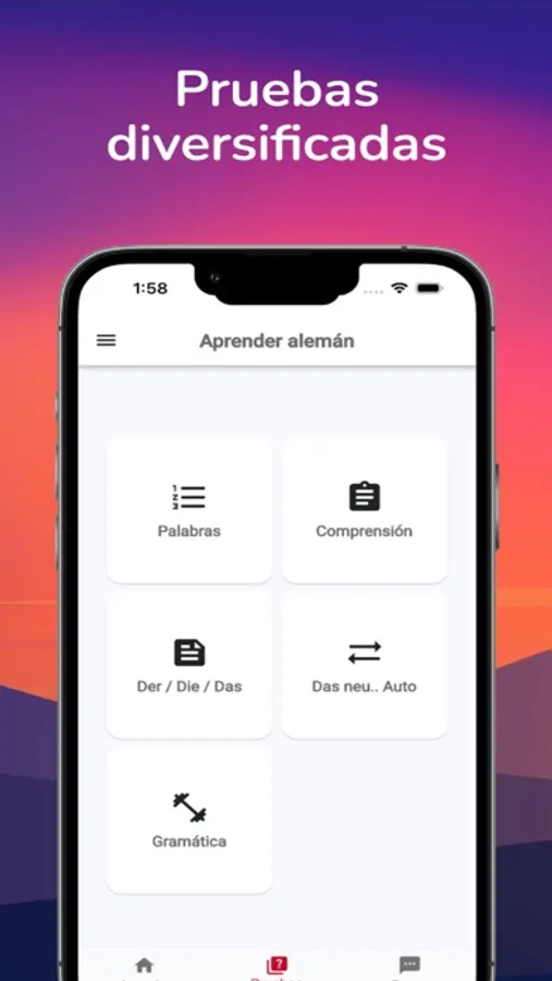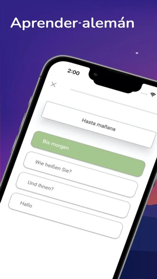 - Pruebas diarias de gramática, vocabulario y conversación alemana. Aprenderá gradualmente y progresará con confianza a través de sus distintos niveles.