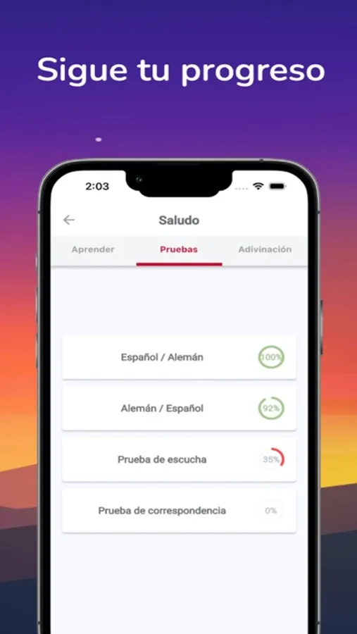 Realice un seguimiento de su progreso de aprendizaje mediante el seguimiento de las estadísticas de progreso. Podrás ver las mejoras realizadas en tus habilidades lingüísticas y comprensión del material.