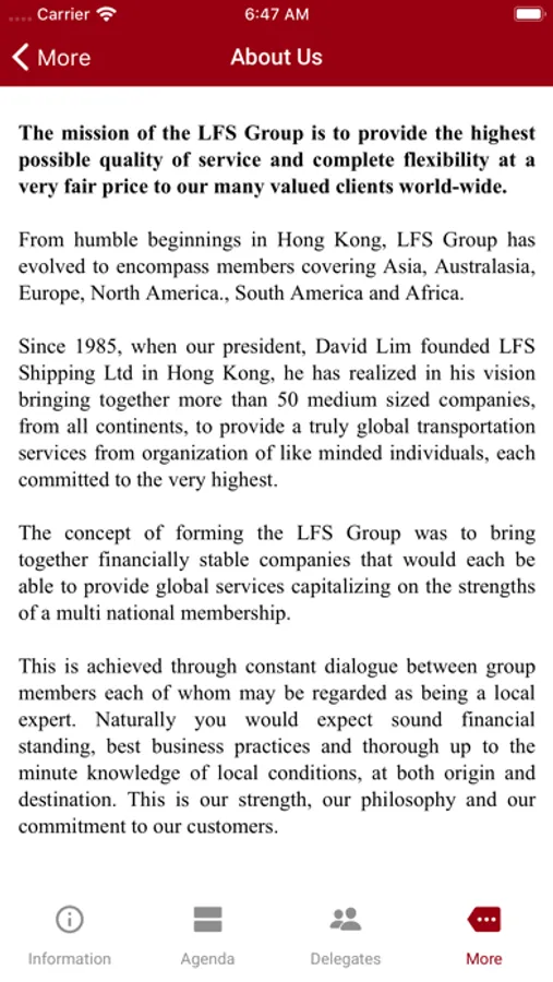 Since 1985, when our president, David Lim founded LFS Shipping Ltd in Hong Kong, he has realized in his vision bringing together more than 50 medium sized companies, from all continents, to provide a truly global transportation services from organization of like minded individuals, each committed to the very highest.