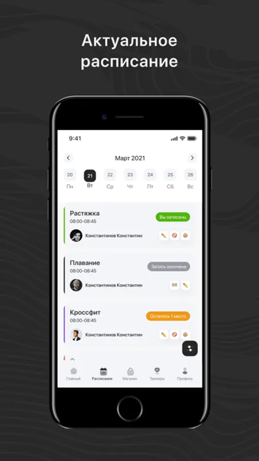 - Посмотреть актуальное расписание тренировок;