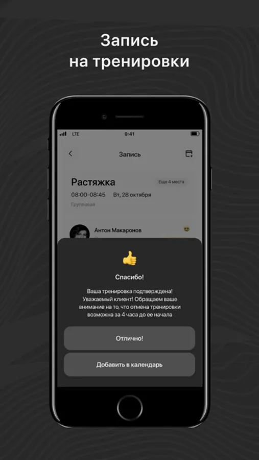 - Записаться на групповые тренировки;