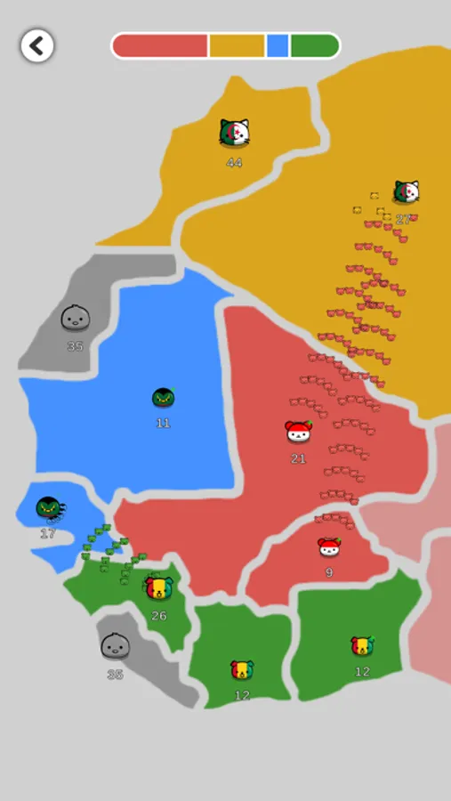 Join the intense war between animals in this captivating strategy game. Take control of your army to conquer territories and dominate the state. Use smart tactics to attack your opponent's territories while ensuring you don't lose your troops too soon. Become the ultimate victor and defeat them all!