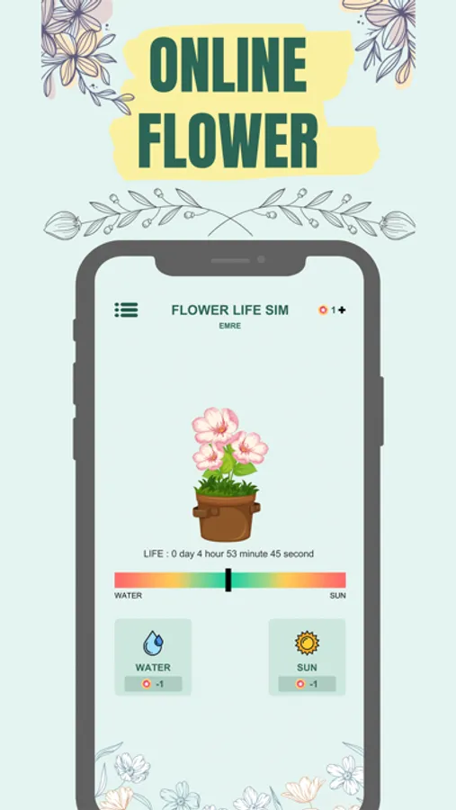 You can download the flower simulator game where you can compete with other users online for free! You can see how long the flower has been alive. Try to keep the bar of life under the flower in the green part so that our flower can live.