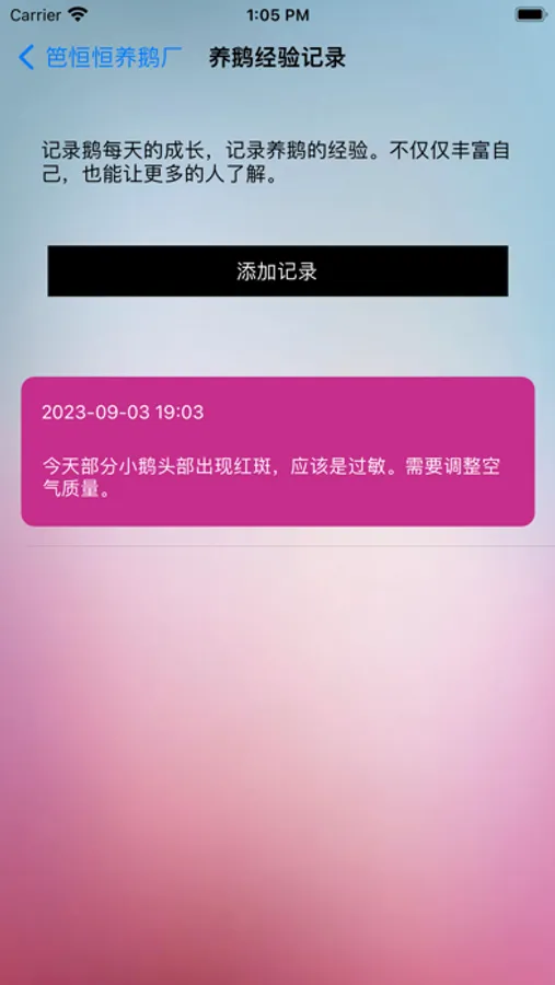 功能3:养鹅经验记录,记录鹅的成长过程