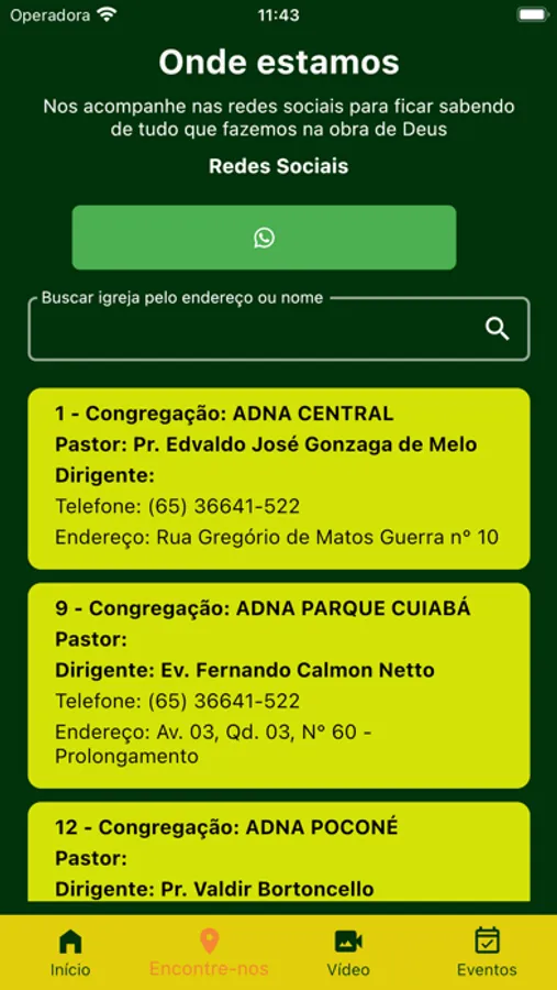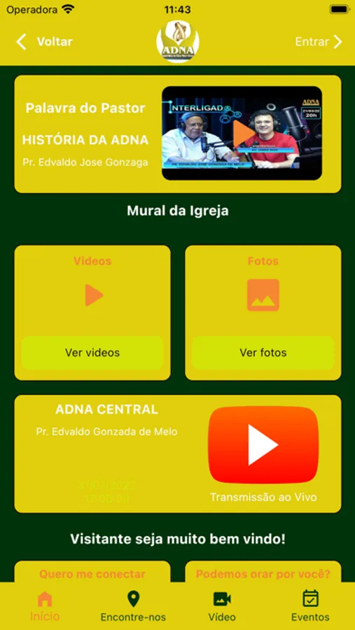 - Mural da igreja com as notícias e ações da igreja local com fotos e vídeos;
