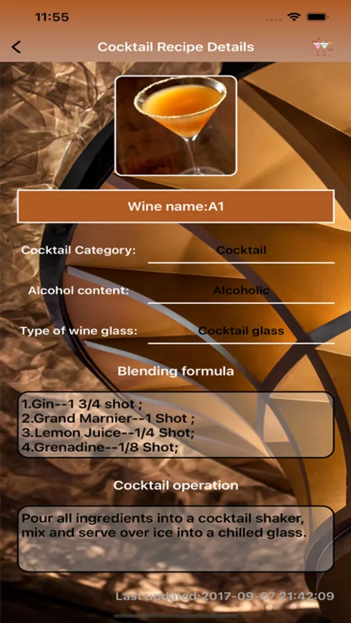 This is an APP for cocktail lovers or bartenders. In our APP you can view a variety of different cocktails, click on the cocktail item you are interested in, you can see the cocktail recipe and other information. At the same time, you can click the favorites button in the upper right corner to add the wine recipe you are interested in to the favorites list.