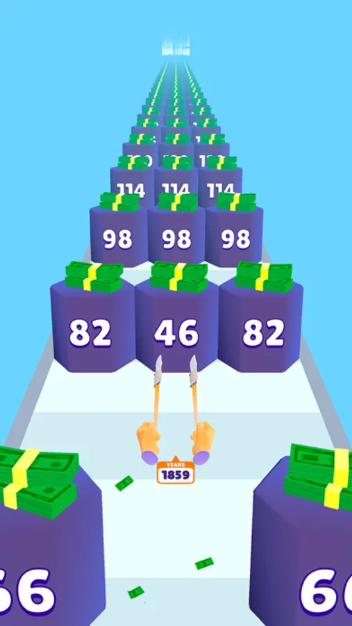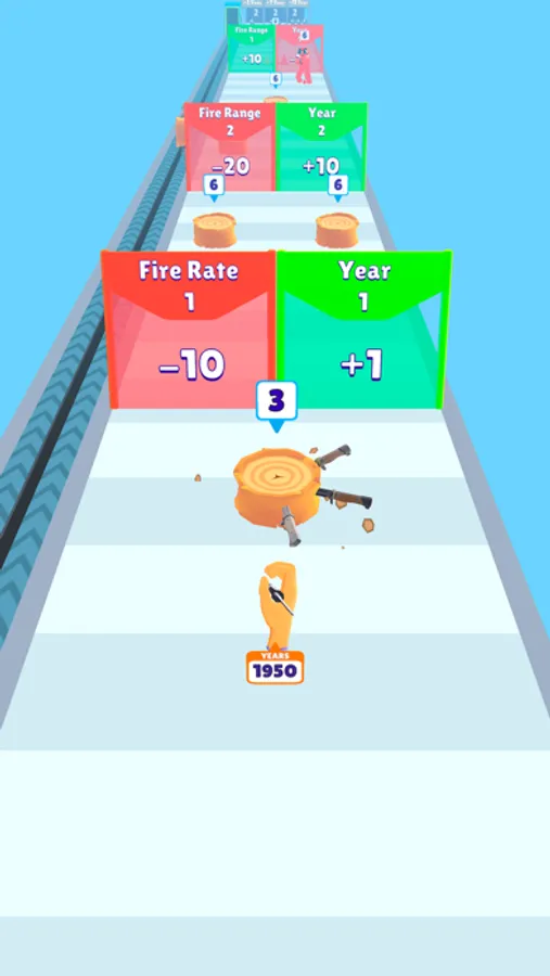 As your knives evolve, they become more powerful and look even cooler! Brace yourself for increased challenges as you progress through the levels. Encounter unique obstacles like gates with negative values (turn them positive with your hits), tough trapped gates (break them with multiple hits), gates on the move, and dynamic rotating logs.