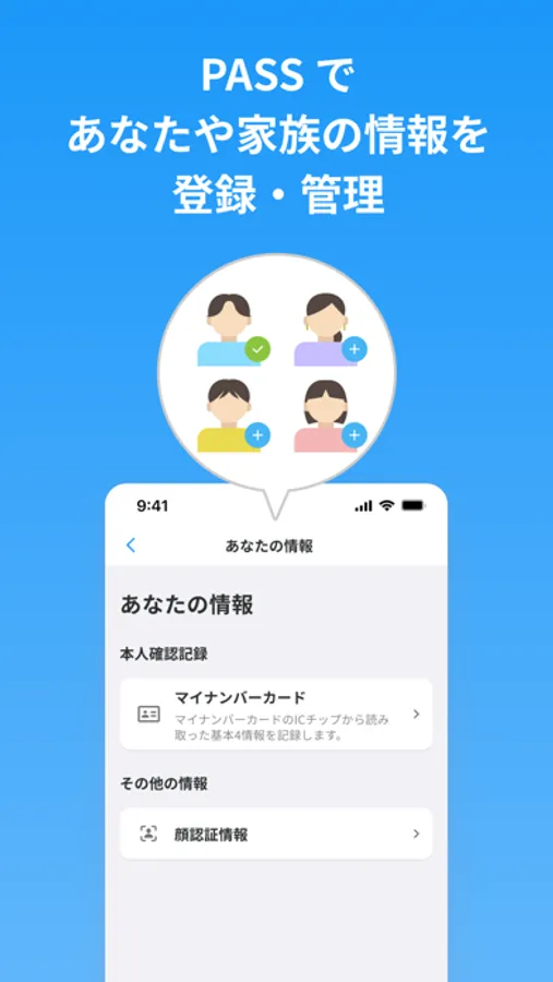 また、併せてマイナンバーカードで本人確認、顔の登録を行います。