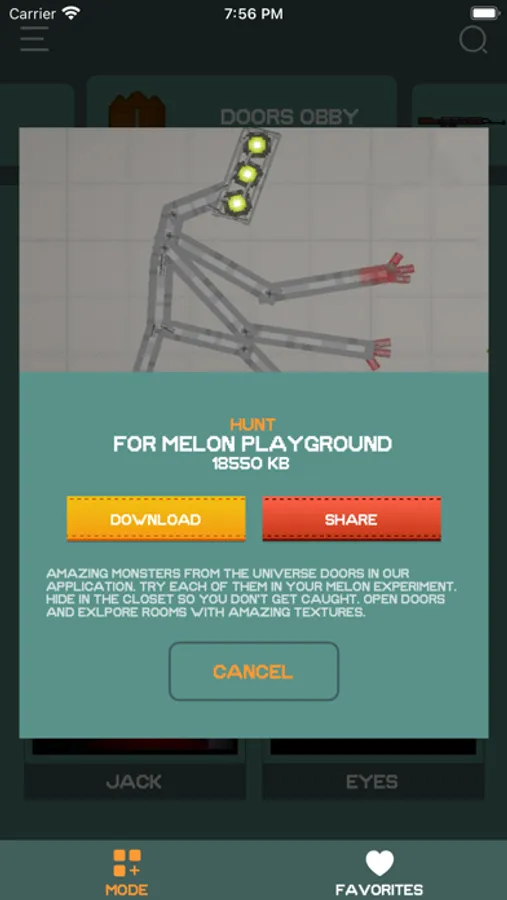 Doors Obby and People for Melon Playground introduces an assortment of captivating characters with a horror theme. With this mod, you can craft a multitude of intriguing movements and craft astonishing sandbox scenarios. Beyond the chilling mods, you can also access the latest and most popular mods.