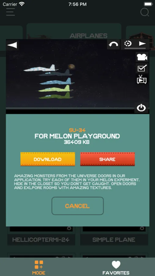 The included mods are, but not limited to: Cars, Airplanes, Doors, Building, Furnitures, People and many more.