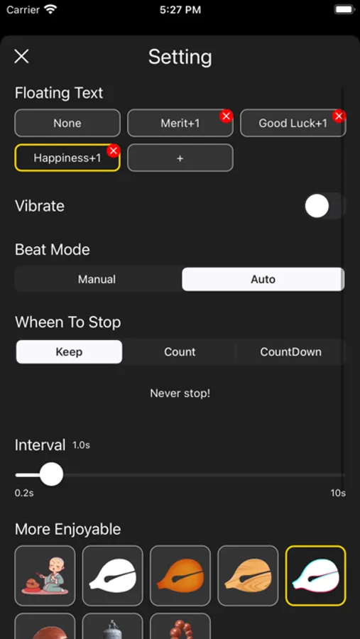 This is an electronic wooden fish app that simulates the sound of a real wooden fish to help you relax and achieve inner peace. It comes with a variety of wooden fish skins and tones, so there is always one that suits you. You can also choose to strike the bell, allowing your inner self to wander through dense forests and valleys with the ethereal and distant sound of the bell. It also simulates prayer beads.